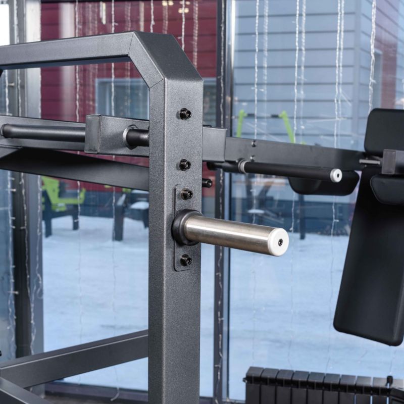 Тренажер обеспечивает глубокую и контролируемую траекторию приседа, позволяя эффективно прорабатывать квадрицепсы, ягодичные мышцы и заднюю поверхность бедра. Регулируемая по углу платформа помогает подобрать оптимальное положение стоп, а высокая спинка и подушки под плечи надёжно фиксируют корпус на протяжении движения. Стартовый фиксатор и демпферы делают тренировку безопасной, плавной и комфортной как для опытных спортсменов, так и для пользователей с разным уровнем подготовки.