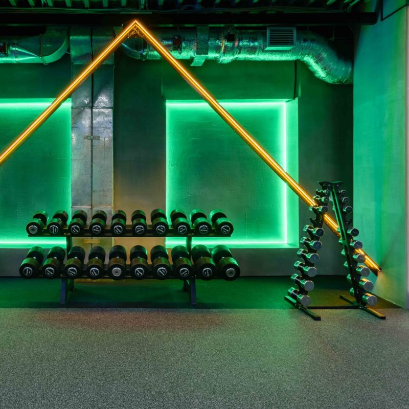 На стойке можно разместить десять пар гантелей с диаметром наружного диска не более 210 мм общим весом до 720 кг.