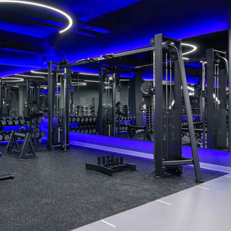 Профессиональный тренажер для коммерческого использования A3122 Стойка для выпадов предназначен для проработки ягодичных мышц и квадрицепсов, а также верхних грудных мышц и передних дельт.