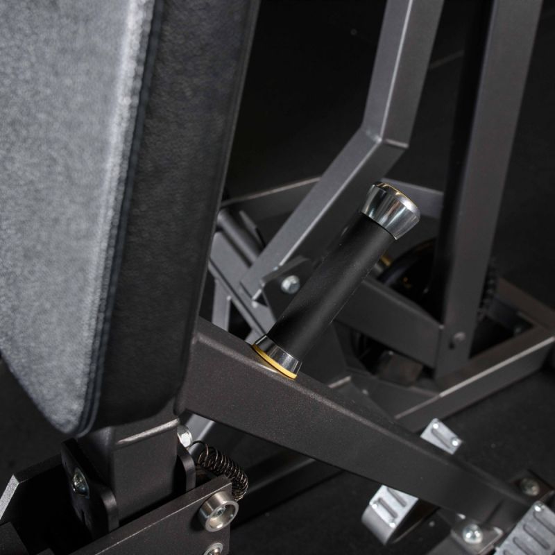 - Два хромированных накопителя на подвижных рычагах оборудованы металлическими держателями для фиксации свободных весов. Стартовое сопротивление 5 кг на один рычаг. На торцах накопителей установлены заглушки из пластика.